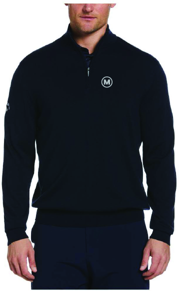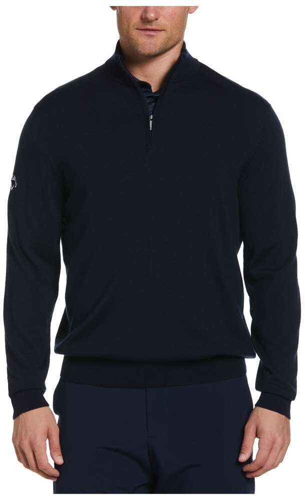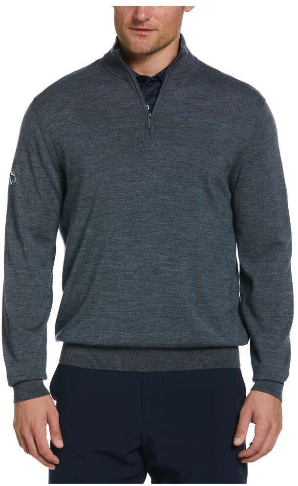 12.5 oz 50% acrylic, 50% merino wool. Thermal fabric provides an extra layer of warm comfort. Rib knit mock collar. 1/4-zip with Callaway signature zipper pull. Contrast embroidered Callaway TOUR logo on right sleeve.
